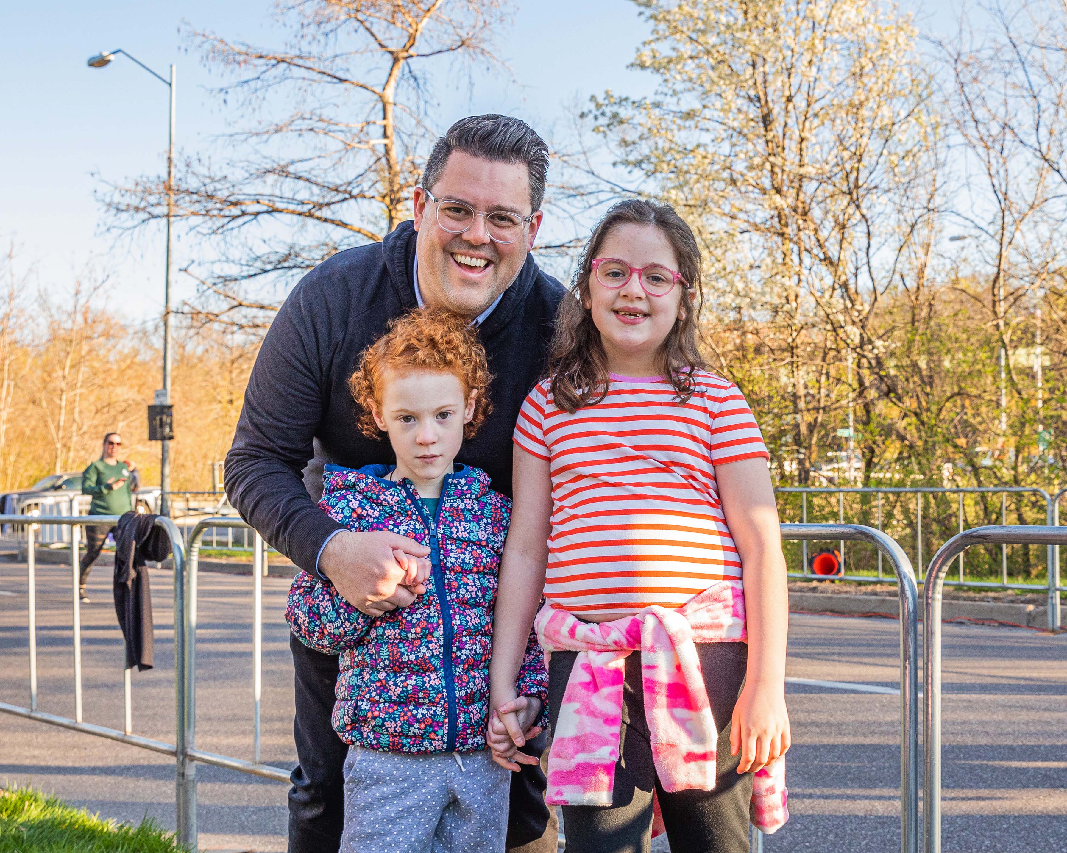 - Event Photo 1 - Eric Linebarger and his daughters Whitney and Claire at the 2023 Rock the Parkway, benefitting Children's Mercy