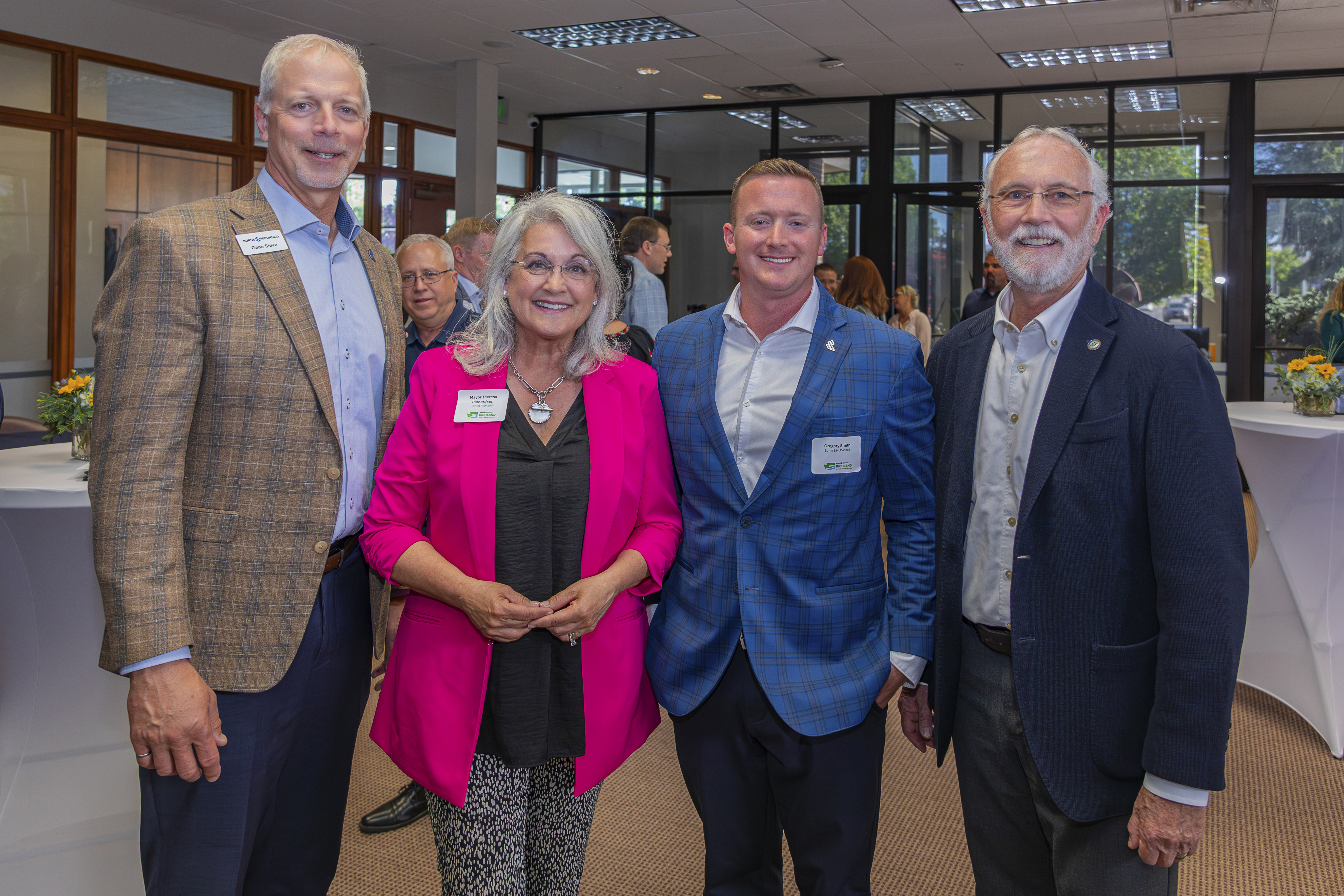 Key community leaders, including U.S. Representative Dan Newhouse and Richland Mayor Theresa Richardson, joined Burns & McDonnell leadership at a ribbon-cutting and open house to celebrate the firm’s new 2,000-square-foot office space at 1060 Jadwin Ave.
