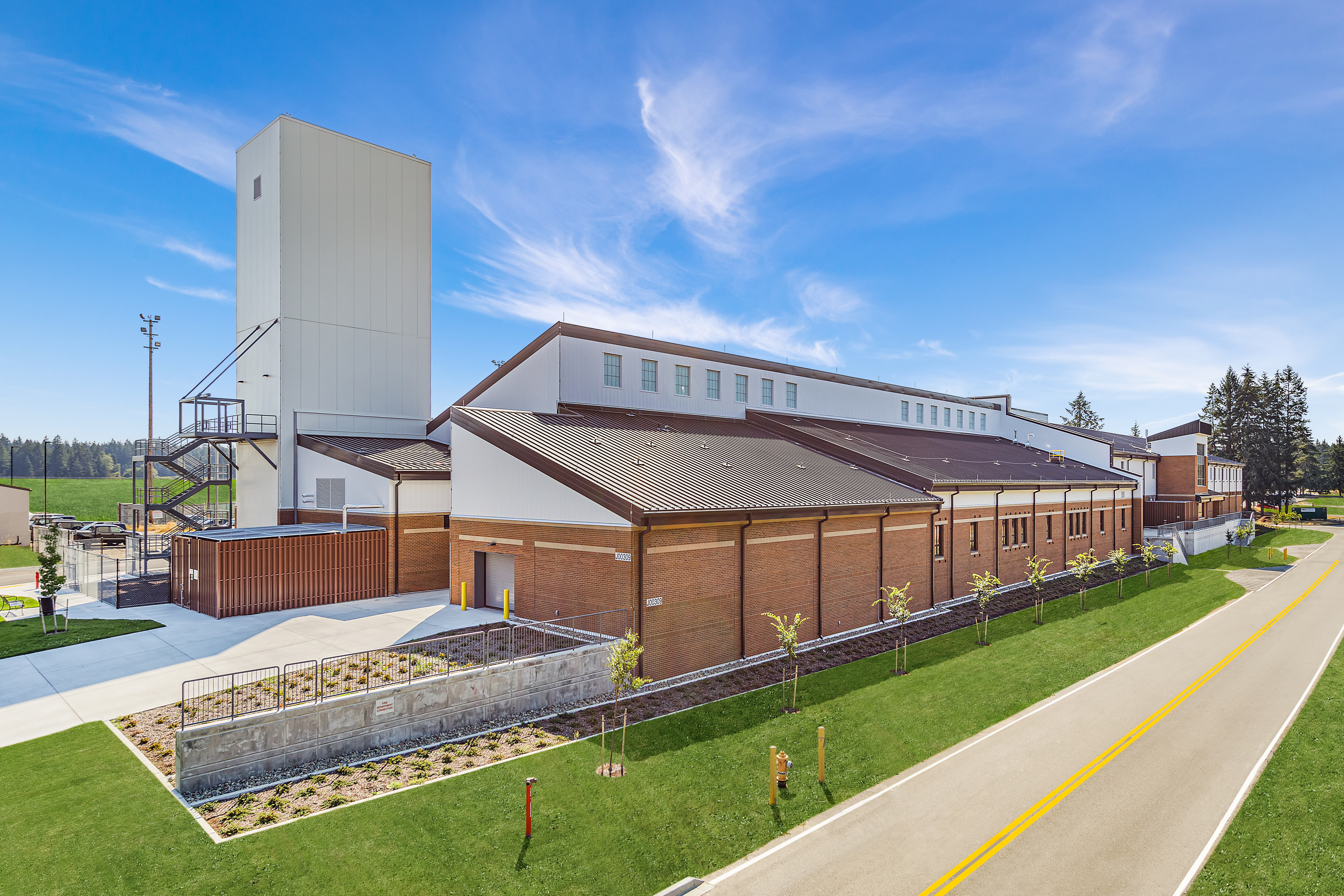 Marking a significant enhancement in operational capabilities and training efficiency, the 85,030- square-foot Special Tactics Squadron Operations Facility consolidates units from four separate buildings into a single, cohesive two-story structure. The comprehensive space includes areas for administration, training, maintenance and storage, as well as an 85-foot drying tower for parachutes, two simulation areas, classrooms, and medical and secure planning rooms. As prime architect-engineer, Burns & McDonnell designed the facility to seamlessly integrate with the base's architectural compatibility plan, utilizing materials high in recycled content to achieve sustainability goals. The structure features concrete masonry units with an exterior brick facade, designed as special masonry shear walls to enhance seismic resilience. Innovative use of masonry's load-bearing capabilities maximizes interior space, eliminating the need for interior columns. This project also received the Excellence in Masonry Award in the Government category from the Masonry Institute of Washington.