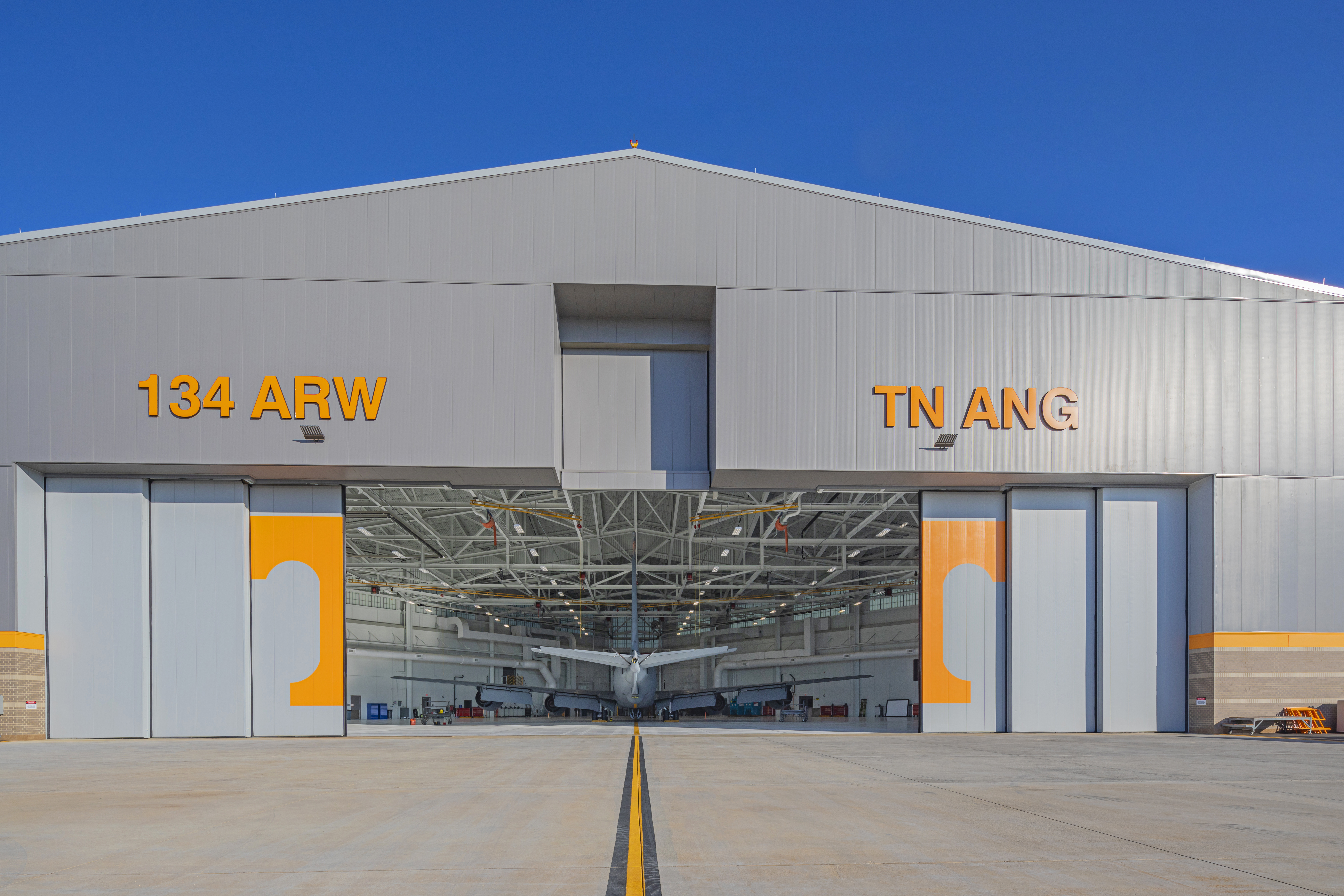 Designed with flexibility to support both KC-135 Stratotanker and KC-46A Pegasus aircraft, the 57,400-square-foot, LEED Silver–certified hangar provides a hangar bay, corrosion control section, avionics shop, and maintenance and general-purpose shop area. As the prime architect-engineer, Burns & McDonnell provided full design and construction support services for the new hangar, creating a significant leap in operational efficiency and safety for the Tennessee Air National Guard and 134th Air Refueling Wing. The hangar's design focuses on sustainability and resilience, with features that enhance seismic resistance and energy efficiency.